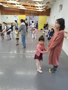レッスンの終わりには、「一日お母さん」の歌に合わせて、親子で踊りました。